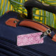 Um sutil e elegante "Pinças de canguru" e os corações desbotam material denim, com estilo, parece uma etiqueta de bagagem estampada em rosa e branco de ameixa. A "Pata de canguru" é uma planta nativa impressionante do oeste da Austrália, este padrão foi inspirado na interessante natureza estrutural "Patas de canguru". Muitas variedades de patas de canguru são cultivadas em jardins por toda a Austrália. Personalize o reverso desta marca com o seu nome e endereço. Este padrão e etiqueta originais foram desenhados por Sarah Trett.