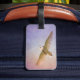Uma etiqueta de bagagem com um celeiro com um fundo texturizado do arco-íris. Personalize esta etiqueta de mala coruja com as informações de contato que você deseja incluir, como seu nome, número de telefone e endereço de e-mail.