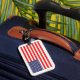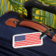 Etiqueta de bagagem de bandeira americana para mala ou mala. Design azul e branco patriótico. Estrelas e listras bandeiras da América. Orgulho dos EUA.