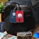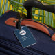 Uma forma excelente de elogiar sua bagagem. Basta clicar em "personalizar" para adicionar suas informações. A imagem está exibindo a frente e o verso de uma marca.