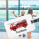 Etiqueta de bagagem de caminhão de bombeiro vermel