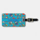Etiqueta ou Etiqueta de Bagagem de dupla face, legal, com um padrão de corujas bonitinhas em vermelho, azul, verde sobre fundo azul-turquesa que você pode facilmente mudar usando o botão de edição. A correia está em couro e o padrão da coruja é de um design de colagem de papel pintado manualmente de origem por Judy Adamson.