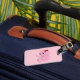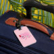 Etiqueta de bagagens com design, com uma ilustração de um elefante cor-de-rosa com um rato branco ilustrado por Radka Kavalcova/MaxiHarmony