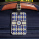 Argyle vai de 8 bits com este esquema de cores azul-marinho, azul-denim e khaki com um ponto de contraste marrom rico criando uma aparência perfeita para amantes deste padrão clássico. Personalize o monograma com o inicial apropriado e os detalhes no verso para um toque personalizado.