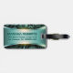 Imagem de um fundo de textura azul-esverdeada metálico com círculos estaminais metálicos geométricos e texto personalizável azul-esverdeado escuro.