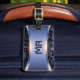 Etiqueta de bagagem de fundo com textura azul metá