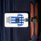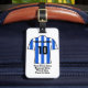 Listras azuis e brancas. Camisas de futebol em azul e branco. Deixe sua etiqueta de bagagem mostrar a equipe que você segue, assim como seu nome e endereço!