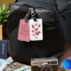 Estes insetos estão prontos para a aventura! A etiqueta de bagagem contém um grupo de levezas doces em aquarelas moles. Coordena-se com a nossa coleção de acessórios de Ladybug de Watercolor, presentes, material de festa e roupas. Personalize com um nome na frente e contate os detalhes na parte traseira.