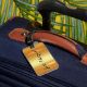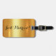 Etiqueta de bagagem de luxo em ouro falso brilhante com o texto em preto: Recem casados! presente de excelente para um casal recem casados para as férias de lua de mel. O nome na etiqueta é facilmente personalizável.