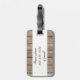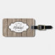 Esta bela etiqueta de bagagem apresenta a aparência de madeira marrom e curvada na frente e atrás com áreas que você pode personalizar com seu nome e inicial do sobrenome, bem como o número de telefone ou o endereço do cheio.