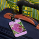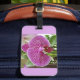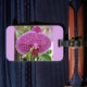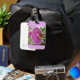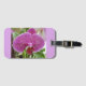 Etiqueta de bagagem de orquídea roxa brilhante com ranhura cartão de visita atrás.