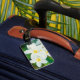 Etiqueta de bagagem dupla com fotografia de flores de plumeria branca tirada na Grande Ilha do Havaí. Este produto é um modelo. Clique em "Personalizar este modelo" para adicionar as informações de contato.