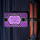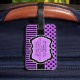 Este monograma de faixas roxas, pretas e brancas e etiqueta de bagagem de padrão de bolinhas é perfeitamente personalizável e daria à sua bagagem uma etiqueta chic e moderna que facilitaria a localização no aeroporto. Se precisar de ajuda ou quiser que algo mude, envie seu pedido por e-mail para niteowlstudio@gmail.com.
