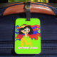 Coloque sua mala em estilo com esta etiqueta verde da moça de desenho. Esta etiqueta de bagagem retrô personalizada adiciona um encanto vintage e torna seu viagem empolgante. É durável, fofo e fácil de personalizar. Escreva seu endereço nas costas e esqueça de perder sua bolsa de novo. Comprar verde retro etiqueta de bagagem de uma garota em um artista de coruja.