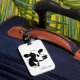 Uma ilustre imagem de vaca negra e branca aprecia a frente desta etiqueta de bagagem. Torne-o único adicionando seu próprio nome especial com este modelo. Mostrado com o slot da placa.