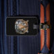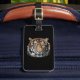 Etiqueta de bagagem de viagem. Uma etiqueta de bagagem é usada para identificar facilmente sua mala caso ela se perca durante o viagem, pois contém suas informações de contato, como nome, número de telefone e endereço, permitindo que alguém chegue a você se encontrar sua mala separada de você.