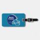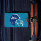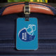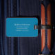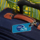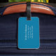 Etiqueta de bagagem de viagem. Uma etiqueta de bagagem é usada para identificar facilmente sua mala caso ela se perca durante o viagem, pois contém suas informações de contato, como nome, número de telefone e endereço, permitindo que alguém chegue a você se encontrar sua mala separada de você.