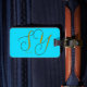 Etiqueta de bagagem de viagem. Uma etiqueta de bagagem é usada para identificar facilmente sua mala caso ela se perca durante o viagem, pois contém suas informações de contato, como nome, número de telefone e endereço, permitindo que alguém chegue a você se encontrar sua mala separada de você.