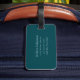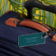 Etiqueta de bagagem de viagem. Uma etiqueta de bagagem é usada para identificar facilmente sua mala caso ela se perca durante o viagem, pois contém suas informações de contato, como nome, número de telefone e endereço, permitindo que alguém chegue a você se encontrar sua mala separada de você.