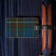Etiqueta de bagagem bonita feita no padrão de xadrez de tartan azul colorido do clã MacConnell. Uma área de texto branco, na frente, tem texto azul pronto para personalizar com suas informações. A maneira perfeita de localizar sua bagagem, e faz uma ideia de presente de excelente.
