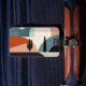 Uma paisagem abstrato de uma cena do deserto com linhas e formas em tons de marrom, laranja, turquesa, bege, bronzeado e preto.