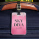 Esta etiqueta de bagagem fácil de localizar na moda, cor-de-rosa, design com "Sky Diva" em uma grande e ousada tipografia popular é na moda e divertida. Personalize facilmente com seu nome na frente e suas informações de contato na parte traseira.