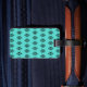 Uma elegante turquesa e um padrão preto enfeitam esta mala divertida. Personalize esta etiqueta de bagagem mudando as letras do monograma para atender às suas necessidades. O design é da arte original.