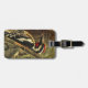 Faça sua bagagem se destacar em um carrossel do aeroporto com designs únicos! Esta etiqueta contém uma fotografia de arte do Sapsucker (Sphyrapicus varius), um pica-pau de tamanho médio encontrado na América do Norte, na América Central e nas ilhas de Caribe. Ele é preto e branco com cabeça vermelha, garganta vermelha e peito amarelo e barriga superior. Ele é comida de carregando em seu grande bico para seu recém-nascido broto que está nidificando dentro a um tronco de árvore marrom oco na floresta. Personalize a parte traseira com suas informações pessoais.
