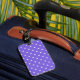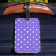 Adicione um toque de reluz à sua bagagem com a nossa Tag da Bagagem Púrpura Dotty Delight! Esta etiqueta de bagagem de na moda apresenta uma bolinhas branca encantadora sobre um fundo roxo brilhante para uma aparência confortável e falsa.