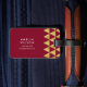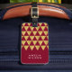 estilo viagem com esta elegante etiqueta de bagagem que apresenta um padrão geométrico moderno de triângulo dourado falso contra um fundo burgundy. Personalize esta marca com suas informações e para obter mais opções, como alterar a fonte e seu tamanho, clique no botão "Personalizar". *Observe que a Marca d'água do Zazzle que aparece na visualização de zoom não aparecerá no produto impresso final. ©Rosewood e Citrus