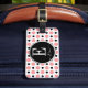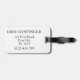 Design cor-de-rosa, preto e prateado com nome personalizado e detalhes de contato no lado oposto.