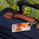 As escrituras de aspas inspiradoras caem na etiqueta de cor d'água da bagagem retrata lindas árvores com folhas coloridas vermelhas e laranja do outono. Ele apresenta a Bíblia Verse Eclesiastes 3:11, "Ele fez tudo bonito em seu tempo."