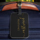An elegant modern minimalist sleek gold script and sans serif monogram on black. Elegant style for your travel accessory. Add your name on the front, then fill in your contact details on the back for peace of mind on the go. A chic choice for carry ons, suitcases, backpacks, work bags, and weekend getaways, and a thoughtful gift for frequent flyers, newlyweds, graduates, and anyone who loves traveling in style.