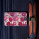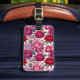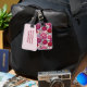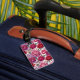 Rosas vermelhas, colônias cor-de-rosa e lilases roxas em um fundo branco criam uma bela etiqueta de bagagem com um olhar antigo. As cores brilhantes e a impressão ousada garantem que esta etiqueta seja fácil de localizar no aeroporto! A parte de trás é cor-de-rosa sólido, com espaço para seu nome e endereço.