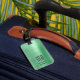 Etiqueta de bagagem verde monograma elegante.