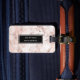 Esta elegante etiqueta de bagagem apresenta uma imagem de fundo de mármore rosa e branco embelezado com veias de ouro rosa. Personalize-o com o seu nome em fontes de sans serif brancas em um retângulo preto. Adicione seu nome e informações de contato no verso em branco sobre um fundo preto.