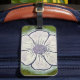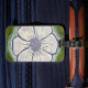Este gigante pansy branco e roxo está tirando essa bagagem fazer sua mala de lado. O design pintado à mão se senta sobre um fundo verde rico. A arte original é pintada à mão - não um design IA.