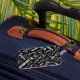 Esta etiqueta de bagagem é desenhada distintamente com o nome "Emma" em um padrão ousado para que não haja engano do proprietário. O design tem um script "E" de cinza clara no fundo e um padrão disperso de um nome personalizado em preto e branco.