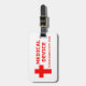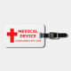 Etiqueta especial de bagagem para bolsas que seguram os seus dispositivos médicos, equipamento ou material. A frente da etiqueta tem uma grande cruz em vermelho com as palavras Dispositivo médico, por favor, manuseie com cuidado. Back tem um texto de marcador de posição para seu nome e número de telefone e as palavras Dispositivo médico e Manipule com cuidado.