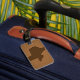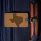 Esta etiqueta de bagagem arrojada é perfeita para uma vista rustica do estado de casa. O design de aparência de couro castanho criado digitalmente é acentuado com um estado marrom da silhueta do Texas.