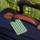 Etiqueta de Mini Bolinhas de Bagagem, em forma de roupa, em forma de cuta e de moda. Este design apresenta bolinhas de círculo pequenas em verde e branco. O texto pode ser adicionado a esta design para lhe dar um toque pessoal.