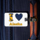 Leuke bagagelabel conheceu de tekst: eu amo o Alaska (no coração do Alaska) Het hart é encontrado de vlag van de staat Alaska. Blauw en geel.