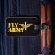 O design lê da "o EXÉRCITO MOSCA" em uma pia batismal amarela no fundo preto com o símbolo do ramo da aviação pelas palavras.