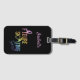 O Rainbow personalizou a etiqueta de bagagem para uma garota de patinação - um belo presente de patinação para identificar uma bagagem ou personalizar um saco de patinação de gelo!Cores: Arco-íris sobre fundo pretoDesign: "Garota patinadora" + silhuetas de patinadoras em vez de letras + personalize com o nome do skater de gelo.