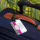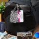 Esta etiqueta de bagagem é sobre ser uma menina feminina. A impressão zebra faz um fundo impressionante para um quadro de ornamentado em uma fita fuchsia bolinhas. Um nome ou outra mensagem é mostrado no quadro rodeado por ornamentos encaracolados. Adicione um endereço ou outras informações de contato abaixo. Disponível em cores alternativas com produtos correspondentes.