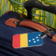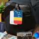 Luggage Tag with the flag of lag of Durham, North Carolina. A red, yellow, and blue flag with seven white stars