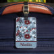 Etiqueta de Bagagem Floral Elegante Azul e Borgonh