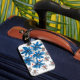 Esta é uma pintura de aquarela original de flores brancas e azuis.