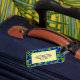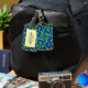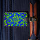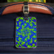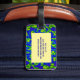 Faça sua bagagem se destacar em um carrossel do aeroporto com designs únicos! Esta etiqueta de bagagem colorida apresenta um padrão circular abstrato selvagem de verdes luminosos e azuis girando em torno de uma flor central com movimento caleidoscópico. As bordas externas têm tons de roxo e magenta. Personalize o texto no verso com suas informações pessoais.