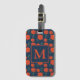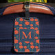 Etiqueta De Bagagem Flores Vermelhas Padrão Monograma Azul Escuro